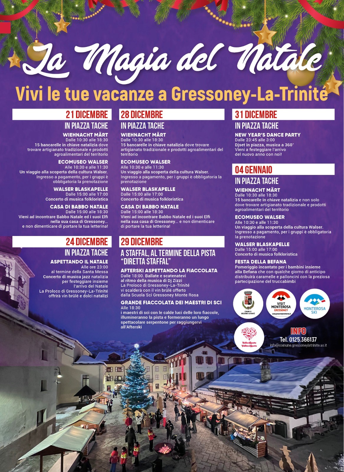 Mercatini di Natale, visite all'Ecomuseo Walser, concerti, fiaccolata dei maestri di sci, Casa di Babbo Natale, Festa della Befana e tanto altro ancora!!!!!!!