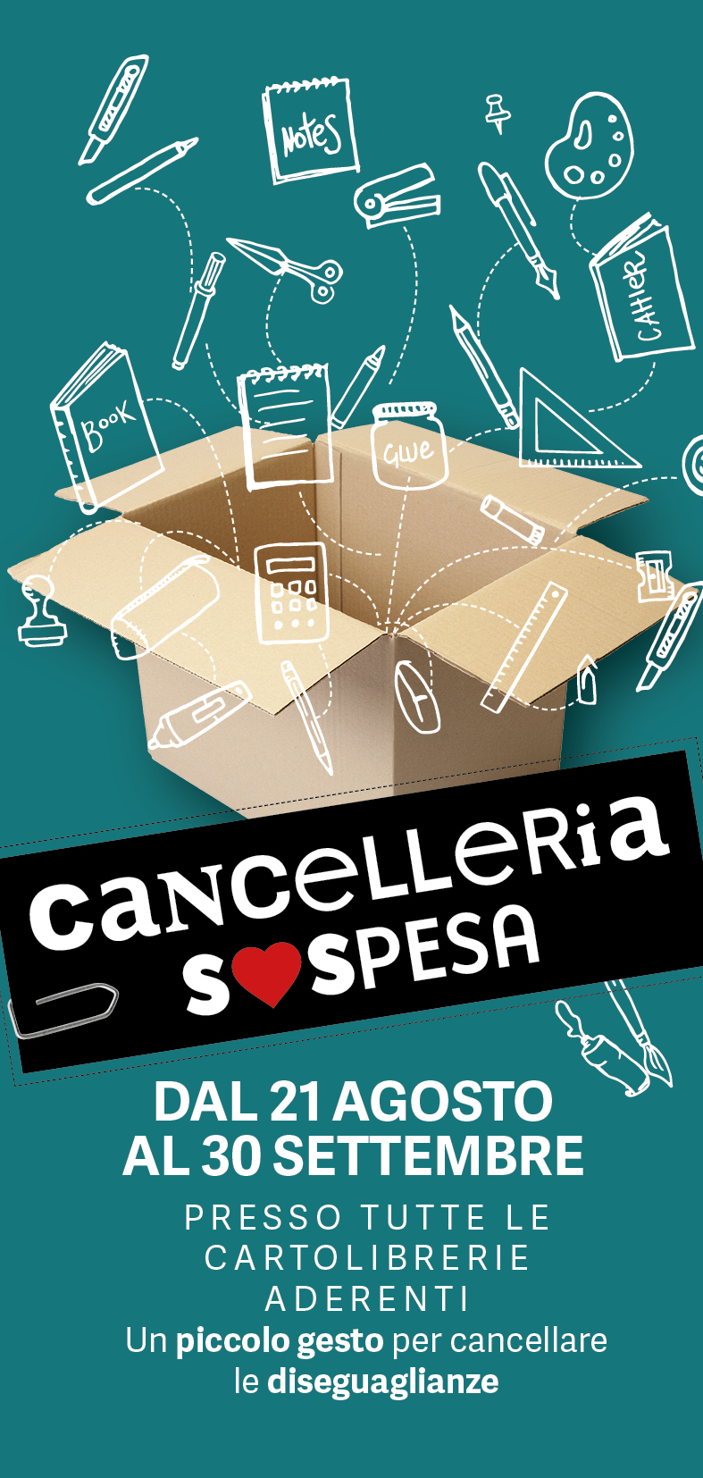 La campagna coinvolge tutto il territorio regionale dal 21 agosto fino al 30 settembre prossimo. Chi desidera dare il proprio contributo, per le famiglie in difficoltà, può recarsi in una delle librerie, delle cartolibrerie o dei tabacchini aderenti all’iniziativa e acquistare materiale scolastico (pennarelli, matite, quaderni, diari, cancelleria varia) o libri per bambini e riporli nell’apposito scatolone presente in ogni punto vendita. Come piccolo segno di ringraziamento per il gesto di solidarietà si riceverà in dono un segnalibro, simbolo della campagna.