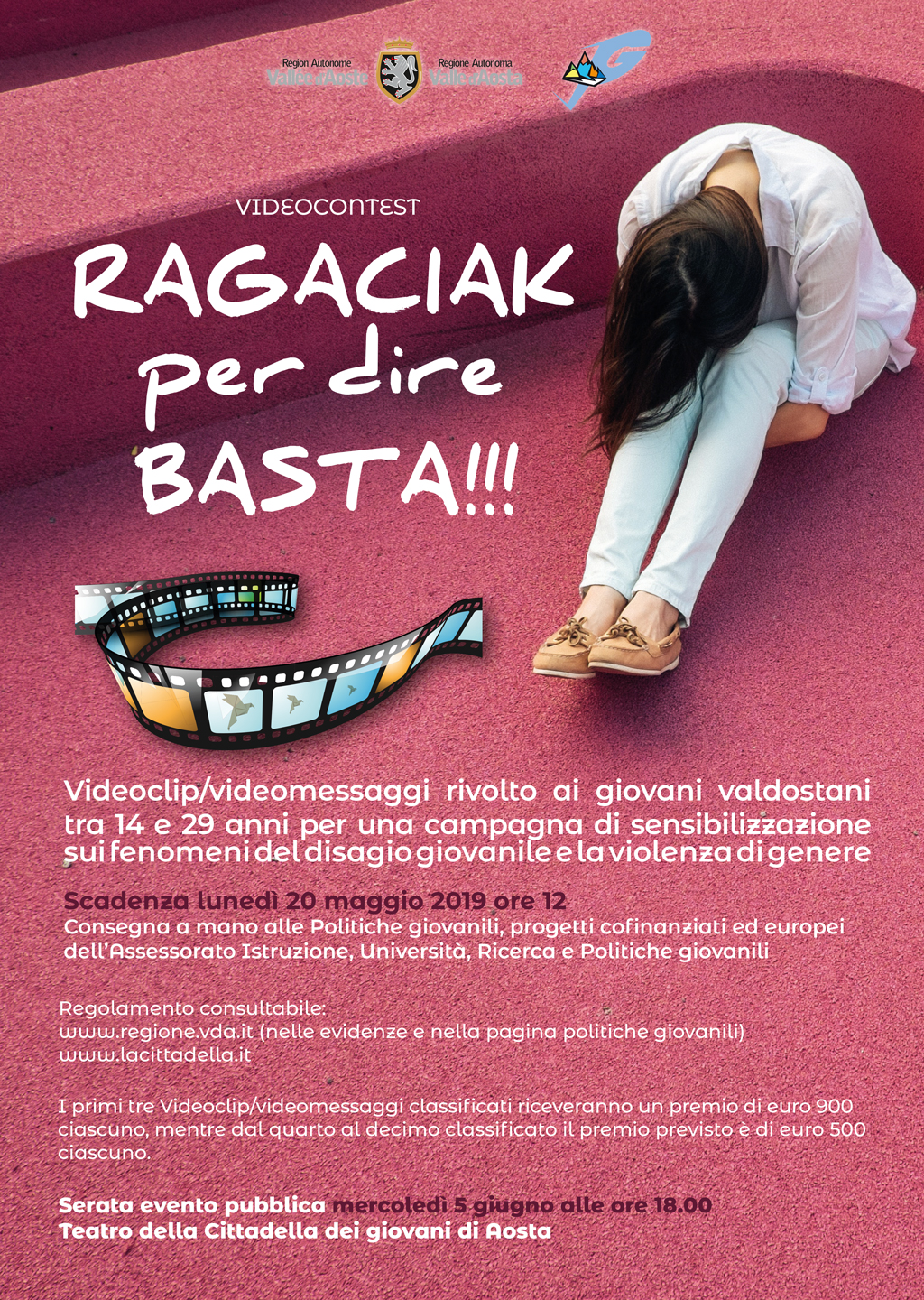 La Struttura regionale politiche giovanili, progetti cofinanziati ed europei dell'Assessorato regionale all'istruzione, Università, ricerca e politiche giovanili organizza un contest che prevede la produzione, da parte dei giovani valdostani tra i 14 e i 29 anni, di videoclip o videomessaggi contro i fenomeni di bullismo/cyberbullismo e della violanza in genere, con particolare riguardo a quella sulle donne.