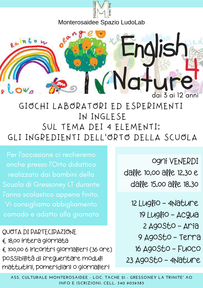 Giochi laboratori ed esperimenti in inglese sul tema dei 4 elementi: Gli ingredienti dell'orto della scuola