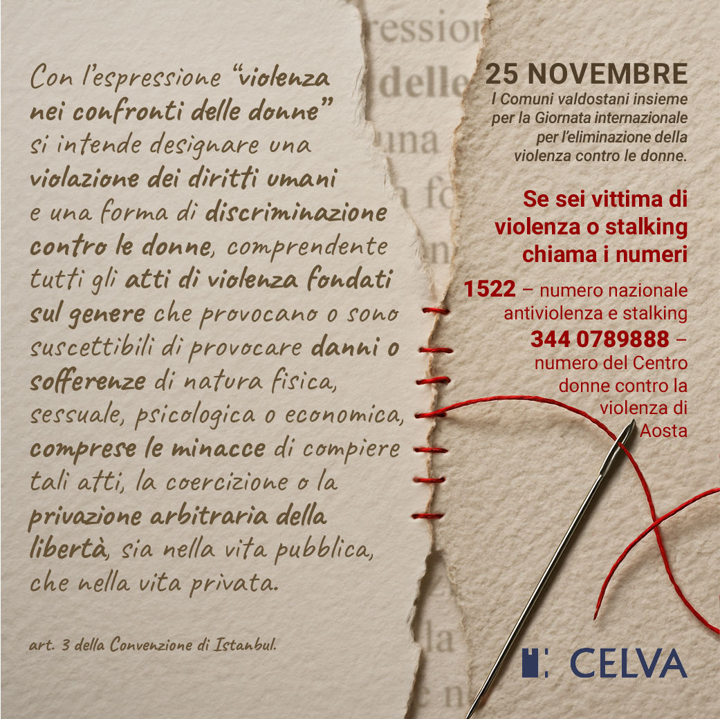 25 novembre i comuni valdostani insieme per la giornata internazionale per l'eliminazione violenza contro le donne